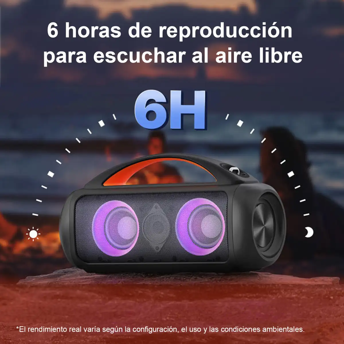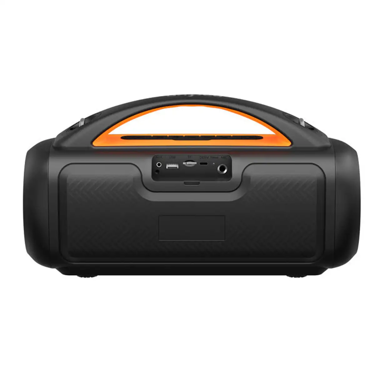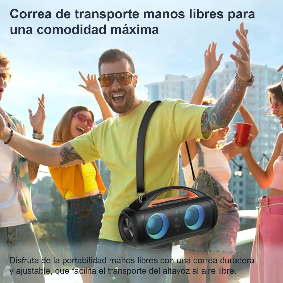 Parlante potente estilo boombox, ideal para viajes. Música potente y con la mejor calidad, estés donde estés. El parlante EarFun UBOOM Raver proporciona una potencia de salida de audio de 2 x 22W + 1 x 3.5W. Resultando en, no solo, sonido fuerte para todos los espacios, sino también en un sonido claro y nítido. Construido con dos altavoces de 3 pulgadas y un tweeter de 2 pulgadas. Los dos altavoces grandes proporcionaran bajos profundos y envolventes, sumados a un sonido y volumen superior. El tweeter es un altavoz especializado para altas frecuencias, optimizado para que los sonidos agudos suenen nítidos y claros. Cuenta con terminaciones de primer nivel, para lograr una impermeabilidad IPX5, convirtiéndolo en ideal para exteriores. Además incluye correa de agarre del parlante para un transporte más cómodo. Elegí escuchar tu música con la mejor calidad, con un parlante con materiales premium para un sonido claro, fuerte y sin distorciones. El alma de la fiesta. Funcionalidad True Wireless Stereo que permite vincular 2 parlantes iguales, logrando un sonido uniforme, claro y fuerte, sin importar el tamaño de tu espacio. Armá el karaoke: Con sus entradas para micrófonos, simplemente conectá y cantá. ¡Que empiece la fiesta! ¿Que hay en la caja? -Parlante EarFun UBOOM Raver. -Correa de transporte. -Cable USB-C. -Manual de uso.