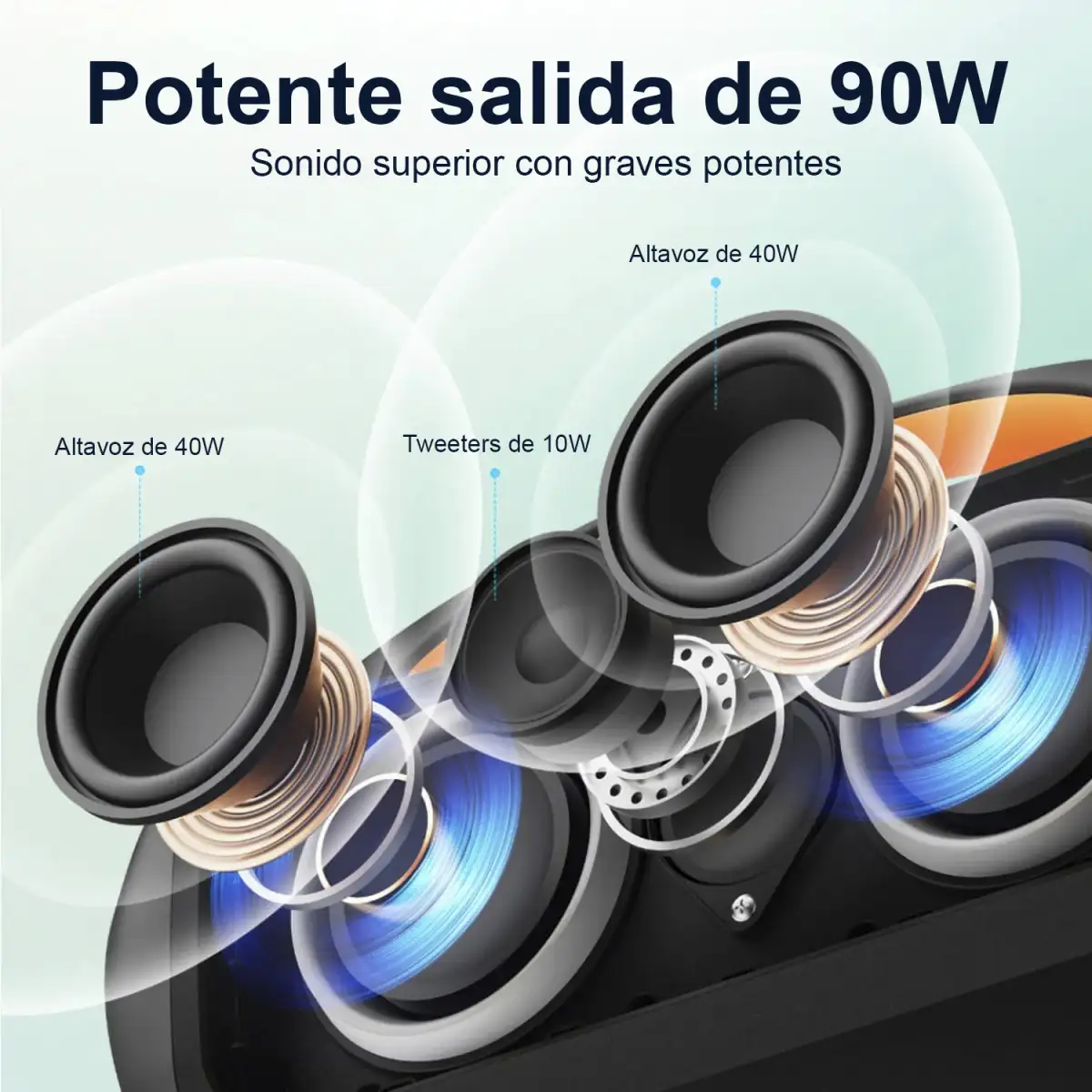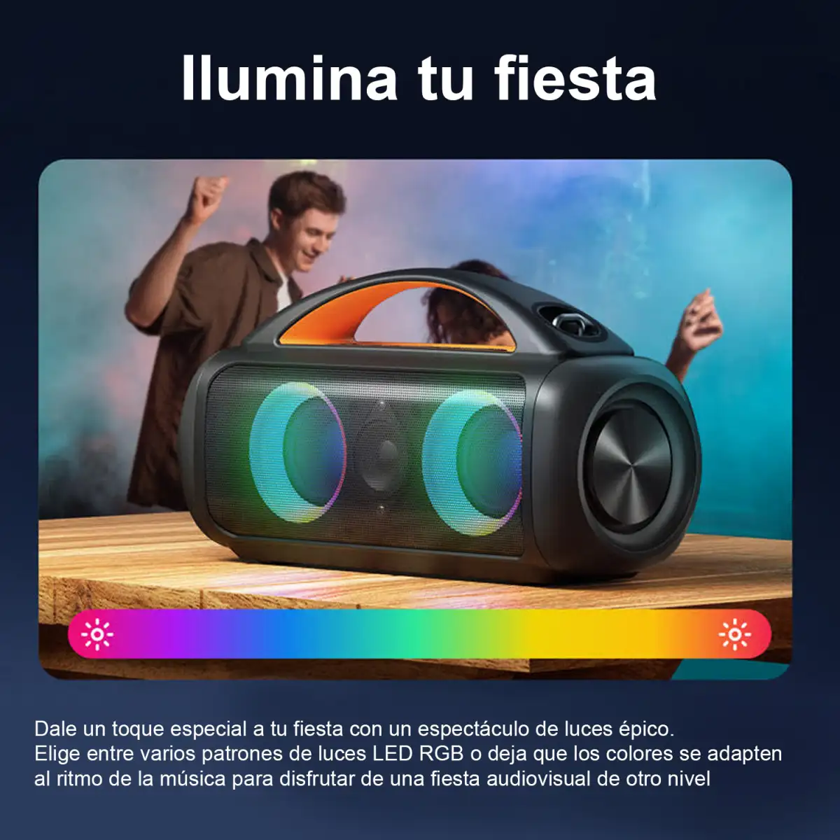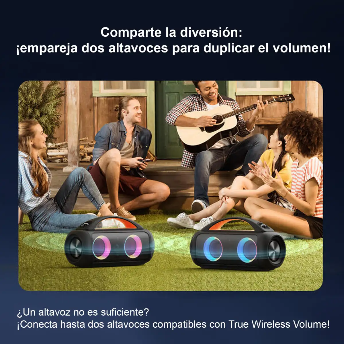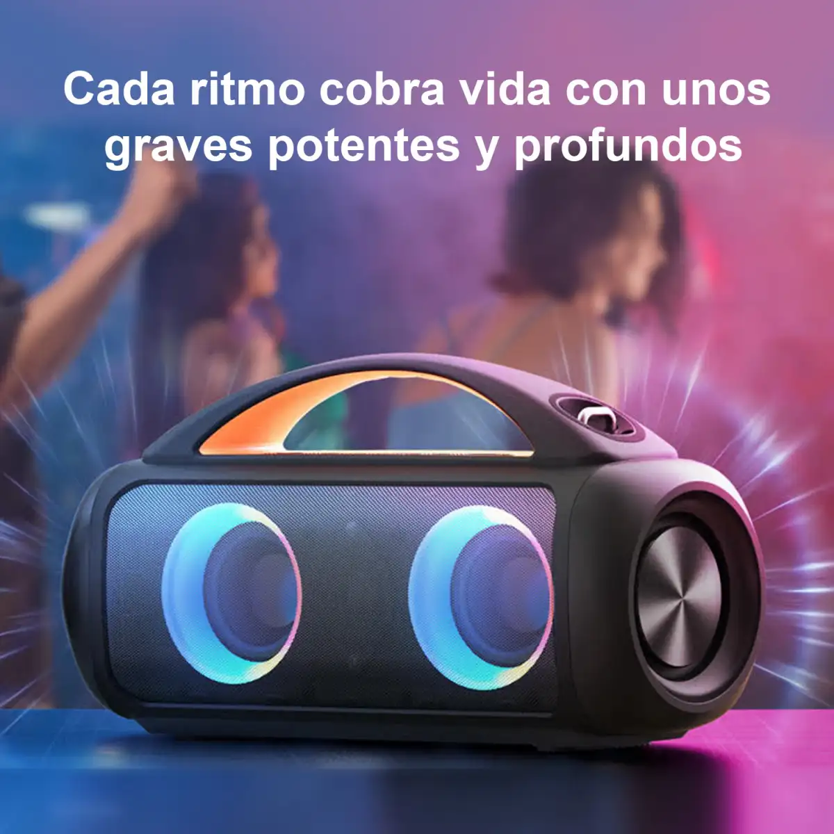 Parlante potente estilo boombox, ideal para viajes. Música potente y con la mejor calidad, estés donde estés. El parlante EarFun UBOOM Raver proporciona una potencia de salida de audio de 2 x 22W + 1 x 3.5W. Resultando en, no solo, sonido fuerte para todos los espacios, sino también en un sonido claro y nítido. Construido con dos altavoces de 3 pulgadas y un tweeter de 2 pulgadas. Los dos altavoces grandes proporcionaran bajos profundos y envolventes, sumados a un sonido y volumen superior. El tweeter es un altavoz especializado para altas frecuencias, optimizado para que los sonidos agudos suenen nítidos y claros. Cuenta con terminaciones de primer nivel, para lograr una impermeabilidad IPX5, convirtiéndolo en ideal para exteriores. Además incluye correa de agarre del parlante para un transporte más cómodo. Elegí escuchar tu música con la mejor calidad, con un parlante con materiales premium para un sonido claro, fuerte y sin distorciones. El alma de la fiesta. Funcionalidad True Wireless Stereo que permite vincular 2 parlantes iguales, logrando un sonido uniforme, claro y fuerte, sin importar el tamaño de tu espacio. Armá el karaoke: Con sus entradas para micrófonos, simplemente conectá y cantá. ¡Que empiece la fiesta! ¿Que hay en la caja? -Parlante EarFun UBOOM Raver. -Correa de transporte. -Cable USB-C. -Manual de uso.